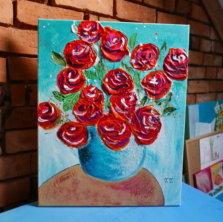 Red Roses Painting Contemporary Floral Artwork Folksy